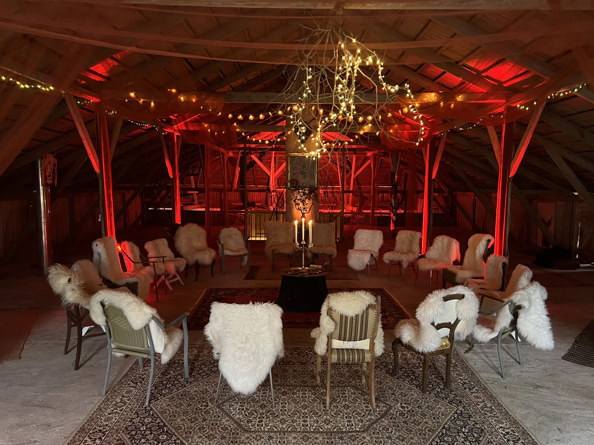 Vi rammesætter intention, format og fælles spilleregler, så du kan give slip på præstation og arbejde fokuseret med dig selv - side om side med andre.
